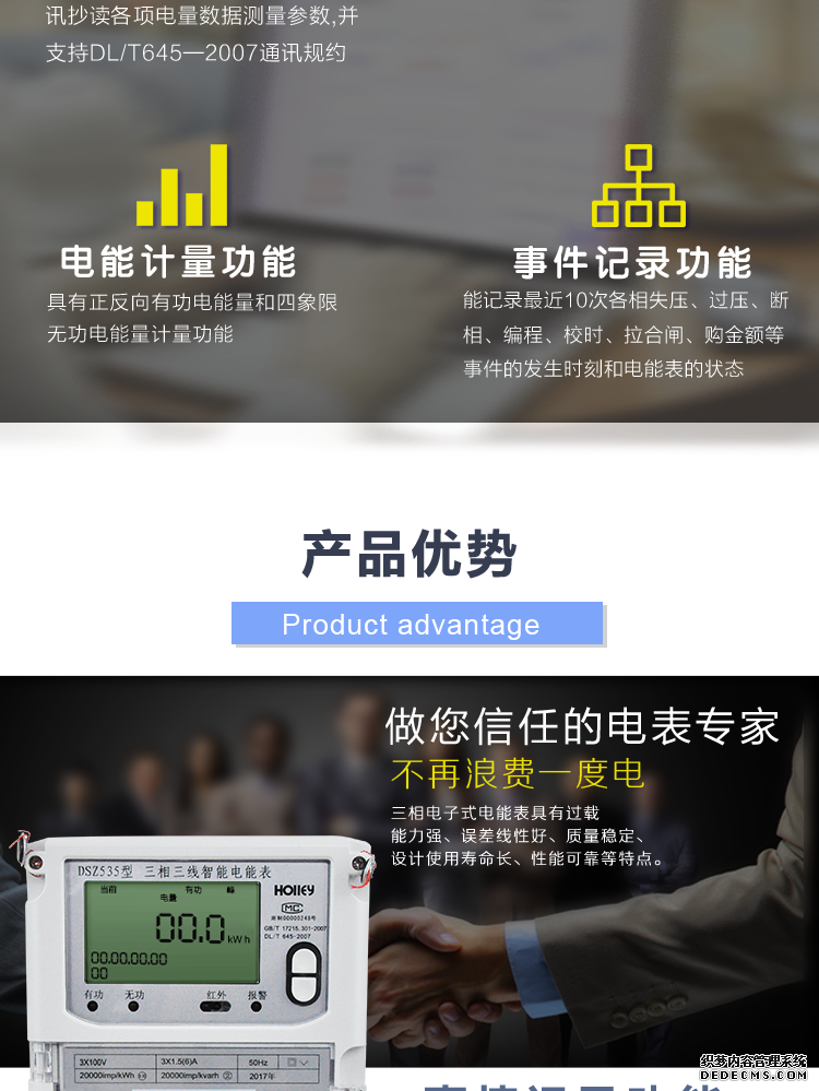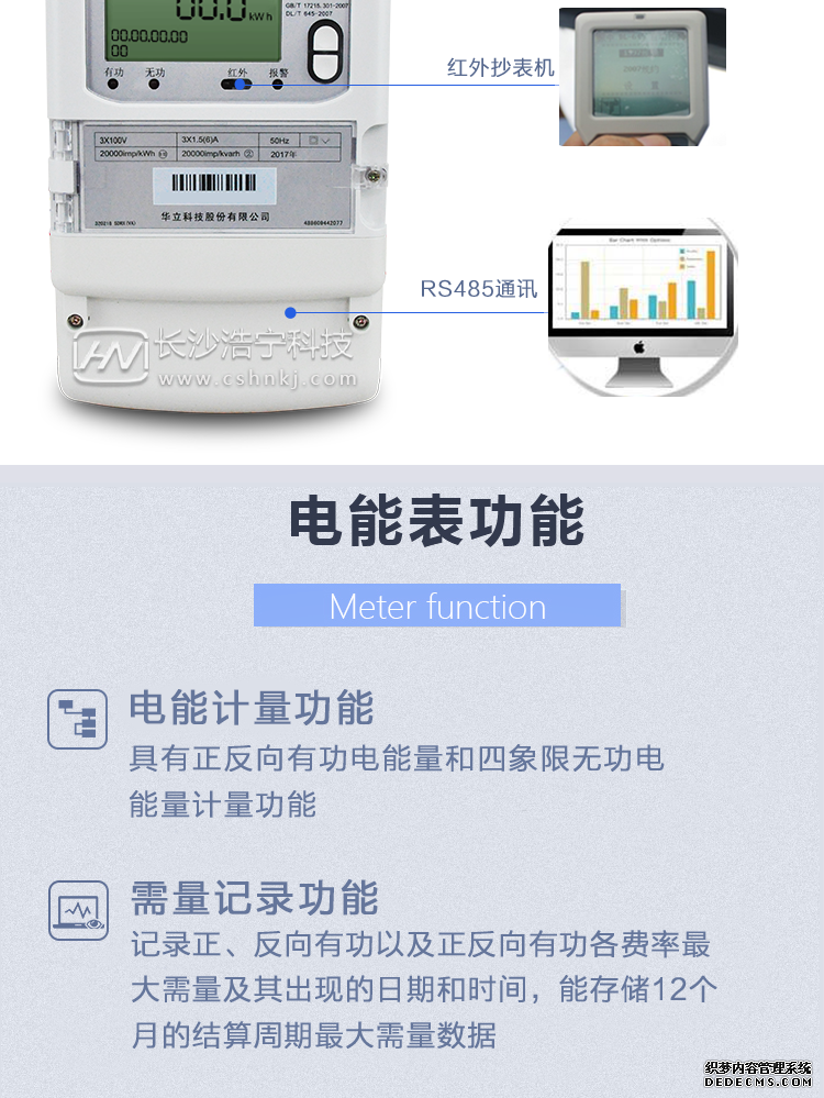 主要功能:有功,功率因素,有功功率,無功功能,視在功率,四象限無功,電壓,電流,事件報警,需量