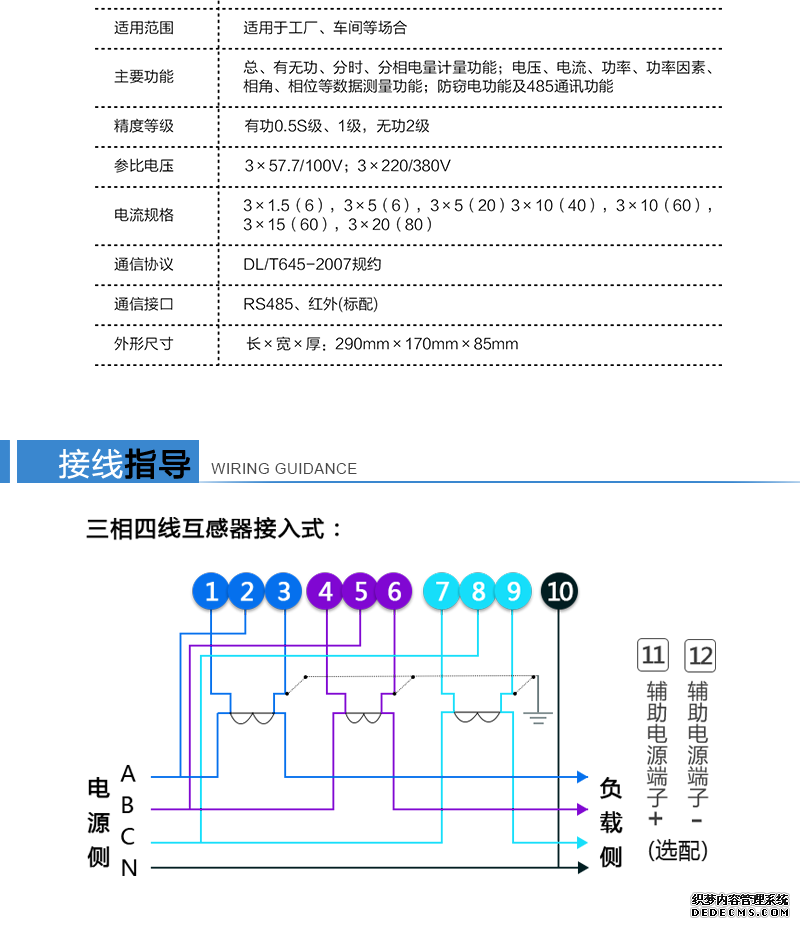 主要功能:有功,功率因素,有功功率,無功功能,視在功率,電壓,電流,事件報警