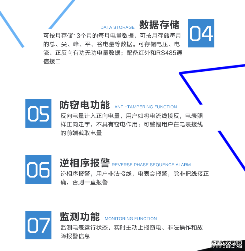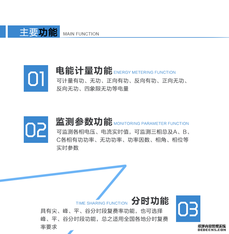 主要功能:有功,功率因素,有功功率,無功功能,四象限無功,電壓,電流,事件報警