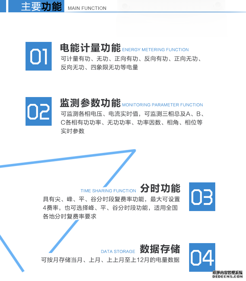 主要功能:有功,功率因素,有功功率,四象限無功,電壓,電流,事件報警