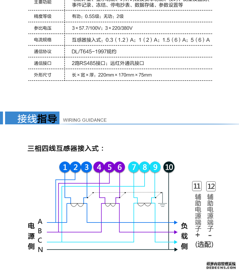 接線制式:三相四線制