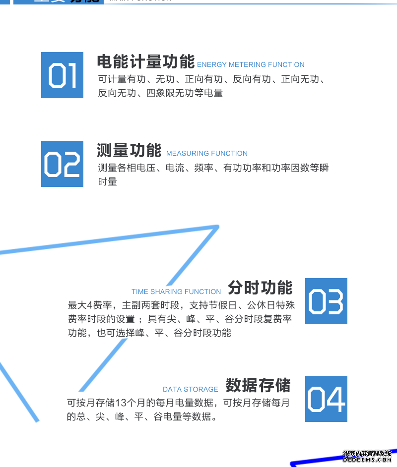 主要功能:有功,功率因素,有功功率,無功功能,四象限無功,電壓,電流,事件報警