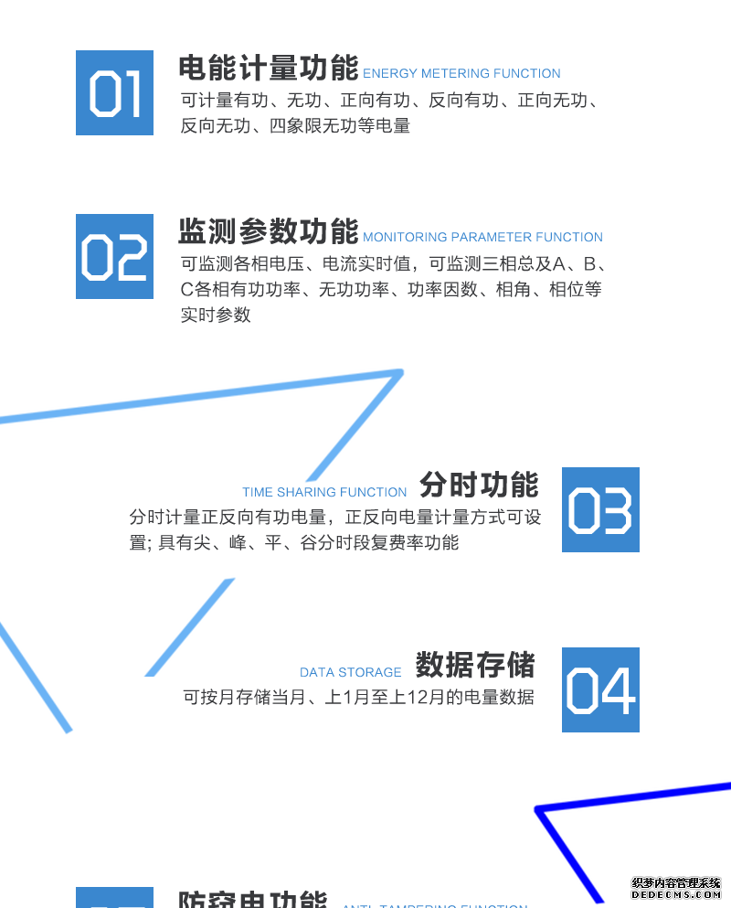 主要功能:有功,功率因素,有功功率,無功功能,四象限無功,電壓,電流,事件報警