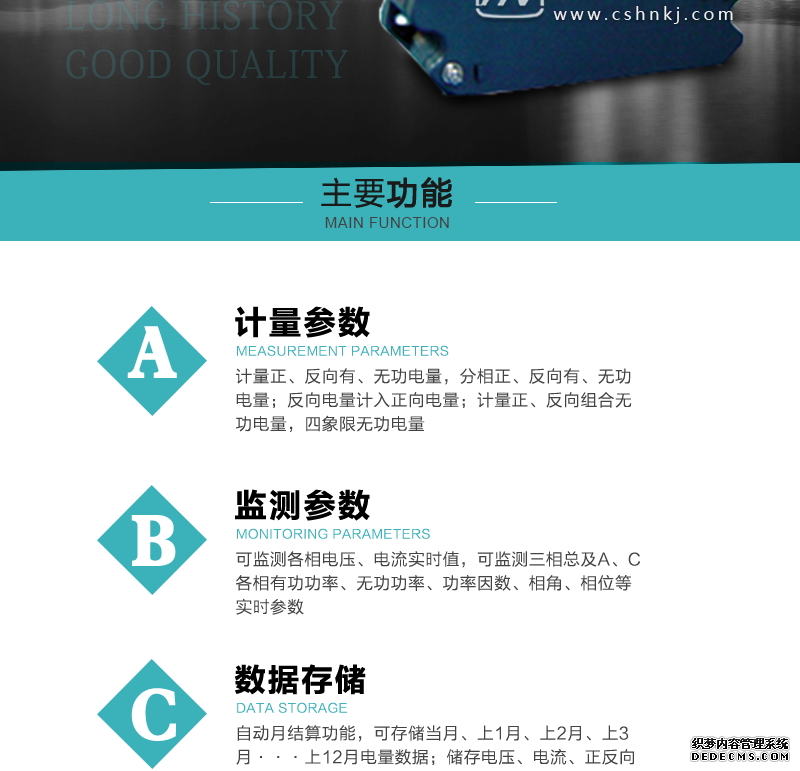 主要功能:有功,功率因素,有功功率,無功功能,視在功率,四象限無功,電壓,電流,事件報警