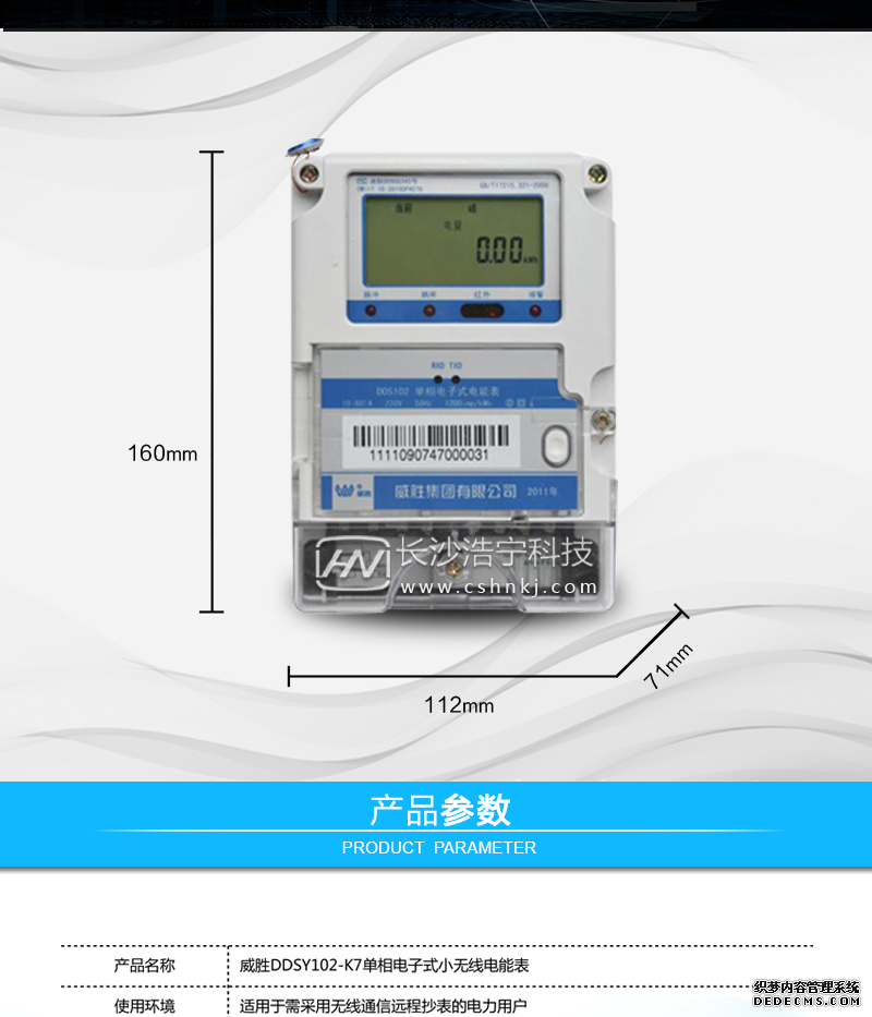 長沙威勝DDS102-Z7單相電子式小無線電能表