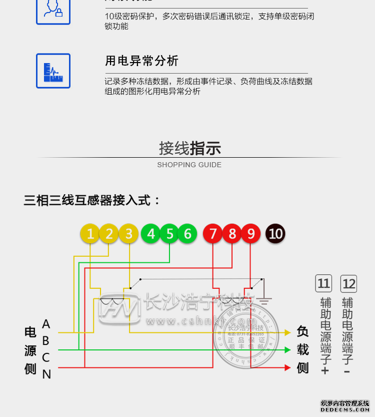主要功能:有功,功率因素,無功功能,四象限無功,電壓,電流,事件報警,需量