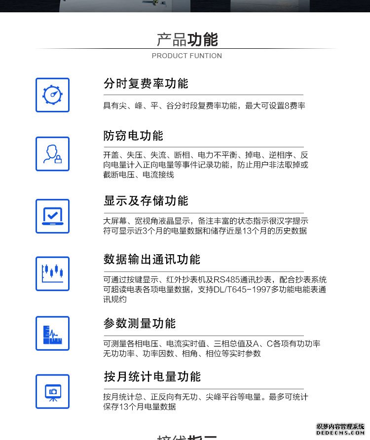 主要功能:有功,功率因素,有功功率,無功功能,電壓,電流,事件報警,需量