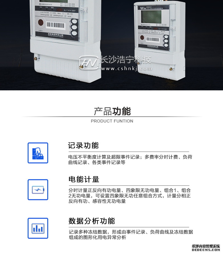 主要功能:有功,功率因素,有功功率,無功功能,視在功率,四象限無功,電壓,電流,事件報警,載波,費控,需量,諧波