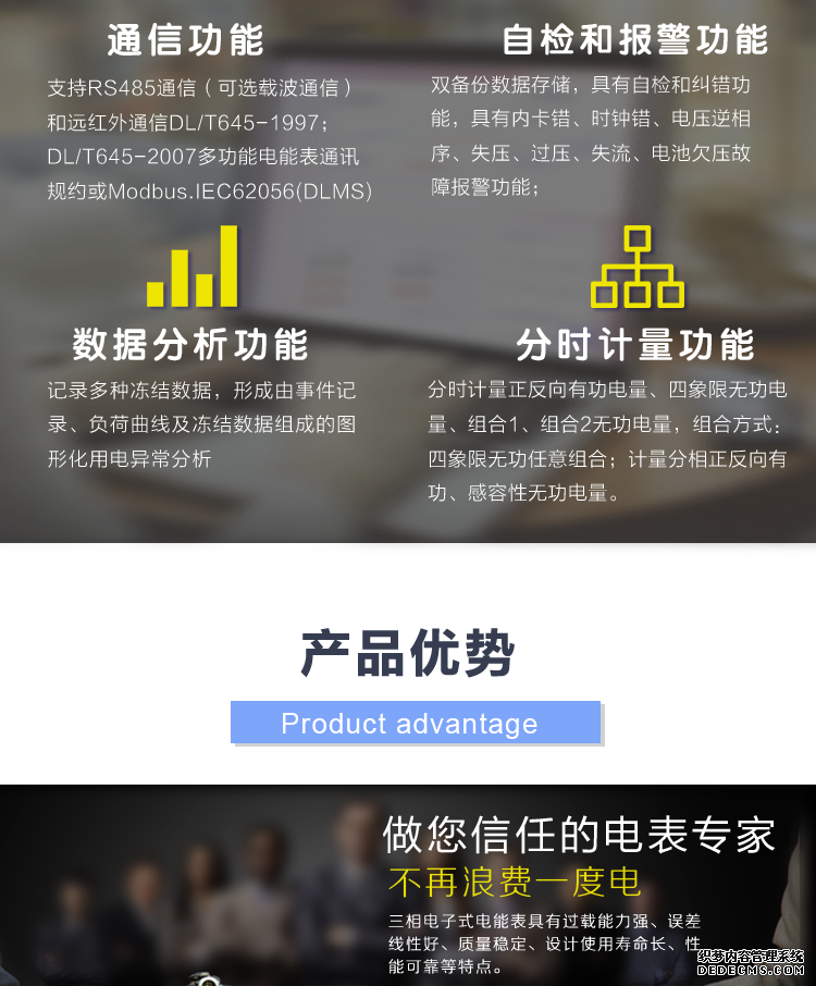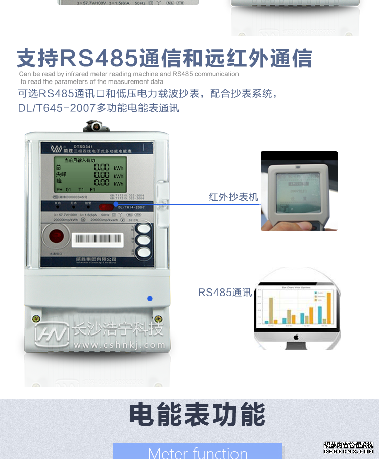 主要功能:有功,功率因素,有功功率,無功功能,視在功率,電壓,電流,事件報警,需量