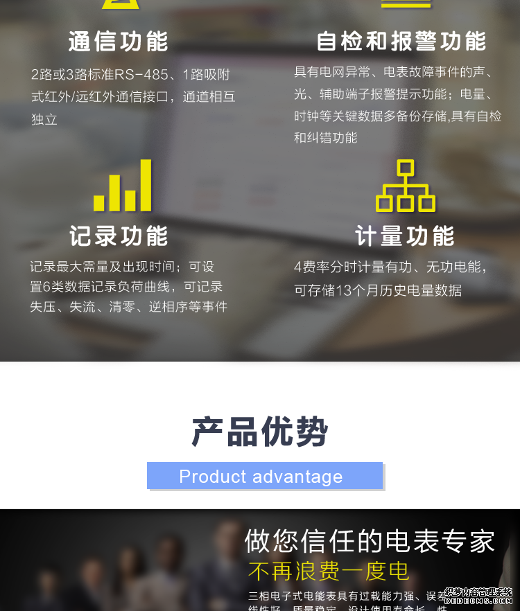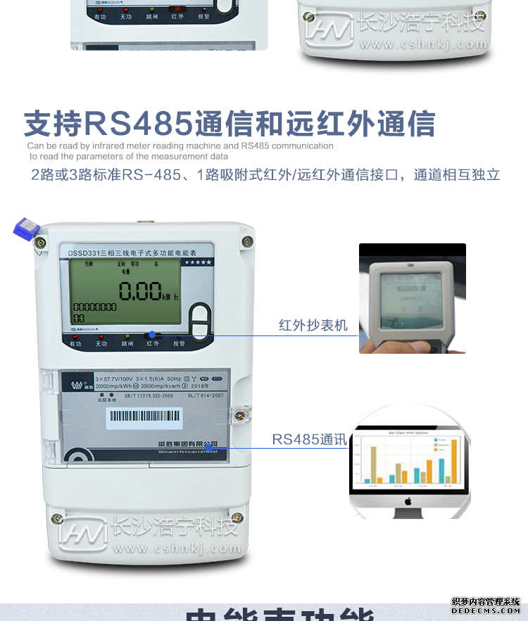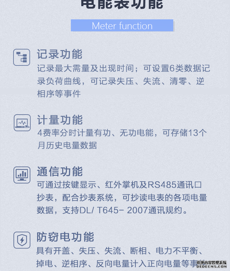 主要功能:有功,功率因素,有功功率,無功功能,視在功率,四象限無功,電壓,電流,事件報警,需量