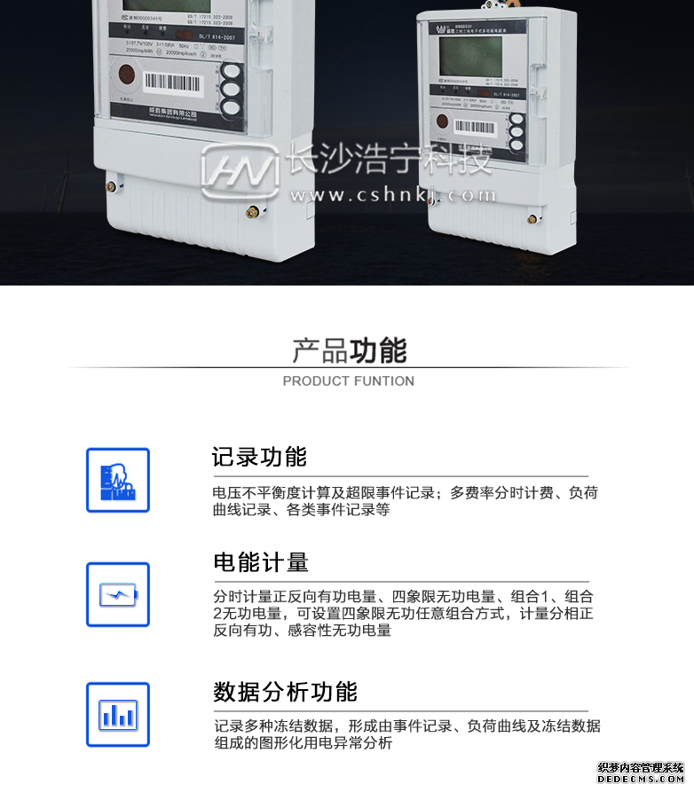 主要功能:有功,功率因素,有功功率,無功功能,視在功率,四象限無功,電壓,電流,事件報警,載波,需量,諧波