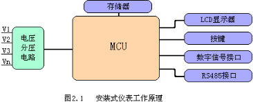 本儀表系列采用了高精度的采樣計量,高速的MCU進行數據處理,豐富的液晶顯示屏,非易失存儲器。具體結構如圖2.1所示。