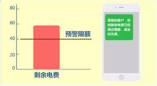 功能四:及時交費——您收到預警限額短信提醒時,及時交費,保證你輕松無憂。