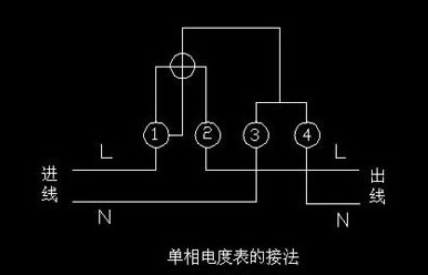 單相電度表共有四個接線端子,從左至右按1、2、3、4編號。