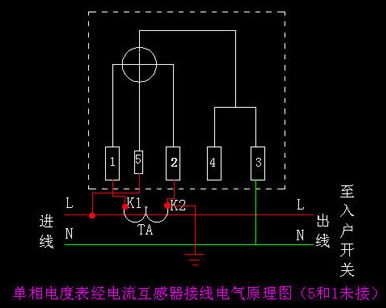 (1)單相電度表內5和1端未斷開時的接法。
