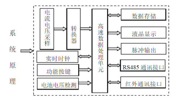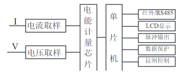威勝單相電表DDZY102就是人們常說的二相電表,一根火線和一根零線,通常叫民用電。單相電能表工作時,電壓、電流經取樣電路分別取樣后,送入電能計量專用集成電路進行處理,并轉化為數字信號送到微處理器進行計算。圖中微處理器用于分時計費和處理各種輸入輸出數據,通過采集電能計量專用集成電路的電能脈沖,完成分時有功電能計量,根據需要顯示各項數據、通過載波、紅外或485接口進行通訊傳輸,并記錄存儲各種數據。下圖為單相電表工作原理圖:
