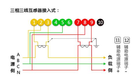 10、11是接零端。為了安全,應將電流互感器S2端連接后接地。(各電流互感器的電流測量取樣必須與其電壓取樣保持相同。即1、2、3為一組;4、5、6為一組;7、8、9為一組;)
