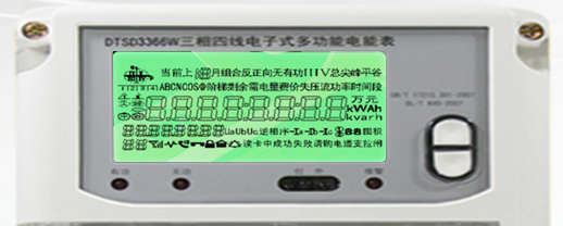 如下是廣東雅達DTSD3366W三相四線多功能電能表, 我們來看一下這款多功能電能表液晶屏上出現的符號代碼代表什么含義?