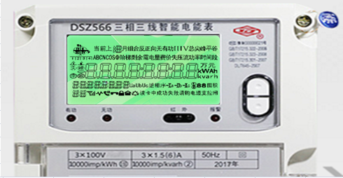河南許繼DSZ566三相三線智能電表,主要功能有分時電量計量功能,參數測量功能,防竊電功能以及485通訊功能。那么它的顯示屏上各個符號都代表些什么含義呢?下面來簡單介紹一下: